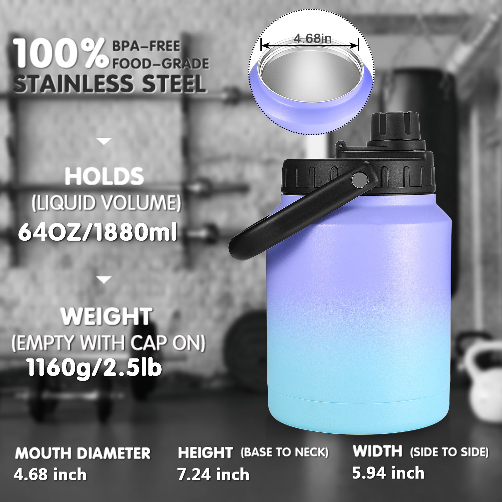 Double Wall Vacuum Thermos Jug Stainless Steel Water Bottle with Handle for Gym Sports |